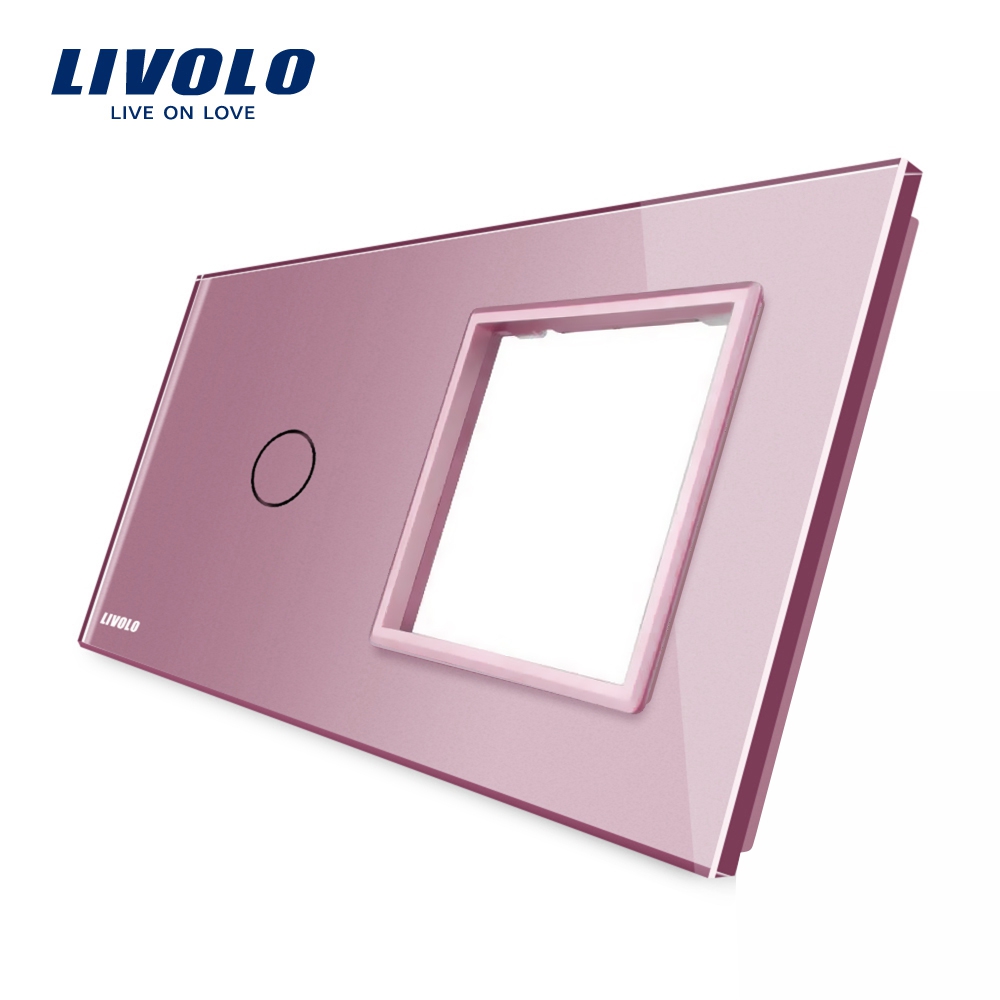 Panou intrerupator simplu cu touch Livolo si priza cu rama din sticla, se poate monta orice intrerupator: cap scara, cu variator, cu timer, wireless.