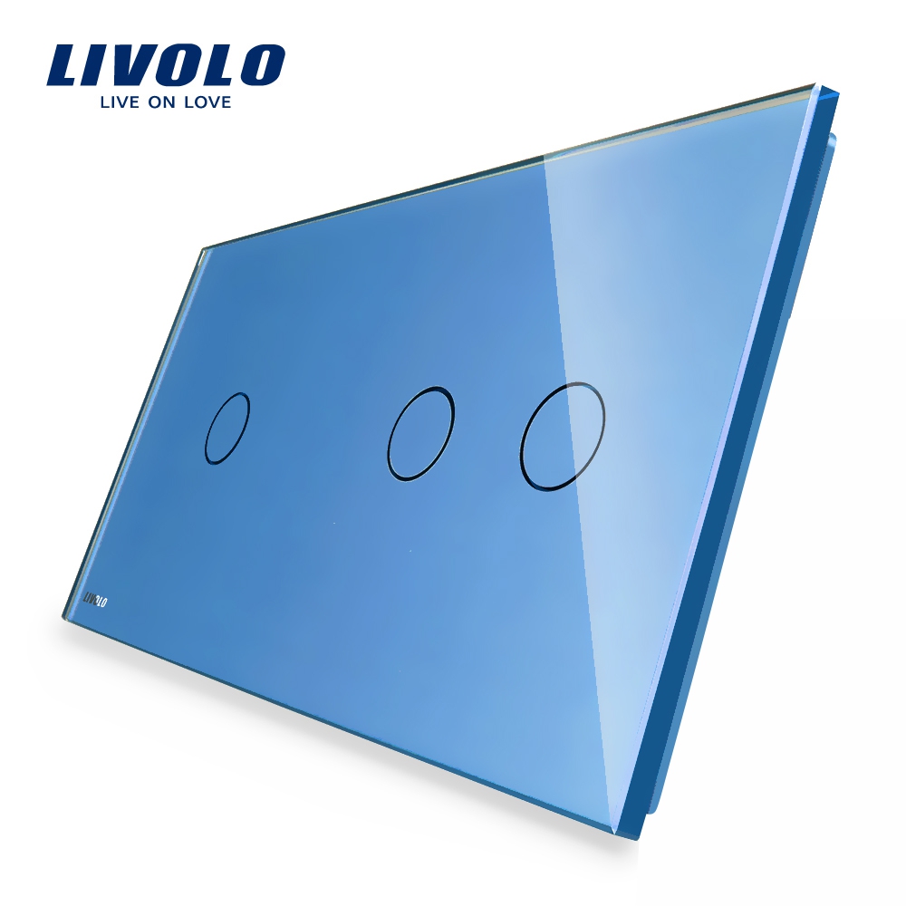 Panou intrerupator simplu+dublu cu touch Livolo din sticla pentru intrerupatoarele cu touch, cu 3 pozitii fabricat din materiale rezistente la zgarieturi si umiditate, mereu va arata ca nou.