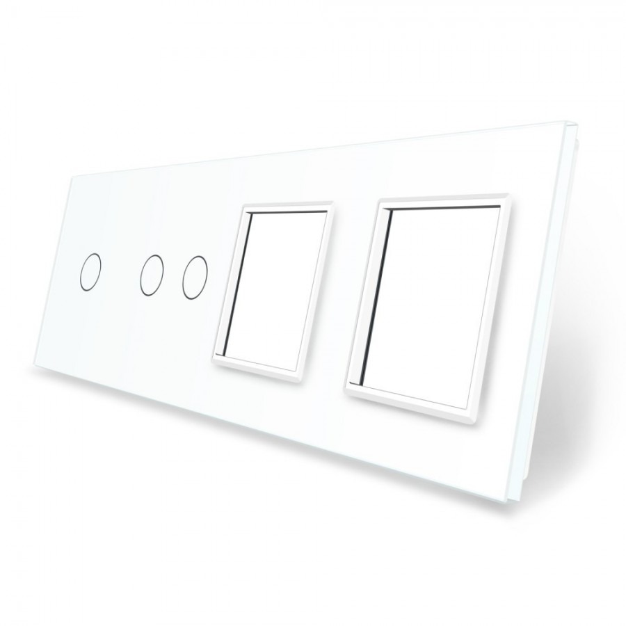 Panou intrerupator simplu+dublu si 2 prize Livolo din sticla crystal, rezistent la zgarieturi, umezeala, praf ofera casei tale un plus de rafinament si confort.