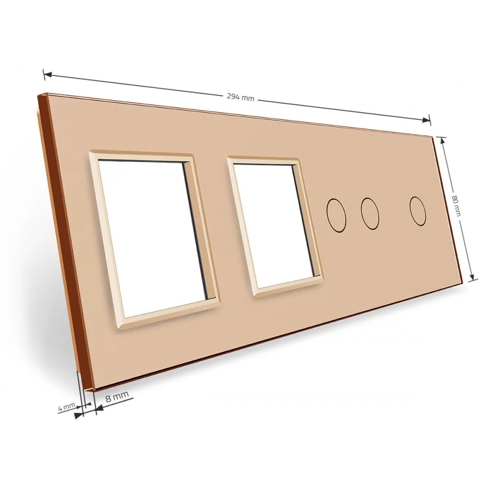 Panou intrerupator simplu+dublu si 2 prize Livolo din sticla crystal, rezistent la zgarieturi, umezeala, praf ofera casei tale un plus de rafinament si confort.