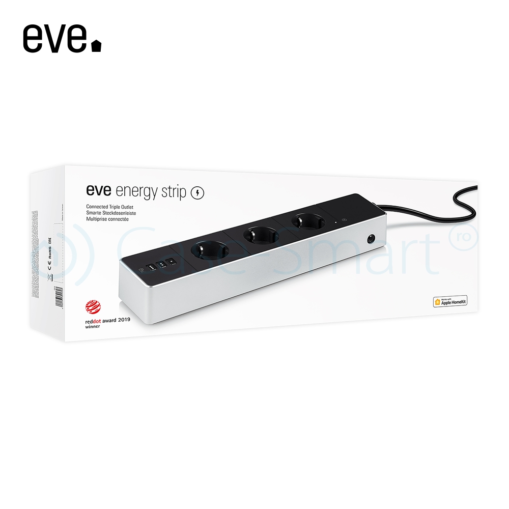 Cu noul prelungitor Eve Energy Strip poti controla cele trei prize individual prin aplicatia de pe telefonul mobil. Poti inchide complet consumatorii de putere precum ar fi tehnologia de divertisment, gadget-urile de bucatarie, echipamentele de birou atunci cand nu sunt folosite, deoarece dispozitivele ramase in modul de asteptare reprezinta pana la 10% din consumul de energie al locuintei. Prin intermediul aplicatiei Eve poti monitoriza consumul de energie la nivel de zi, saptamana, luna si an!