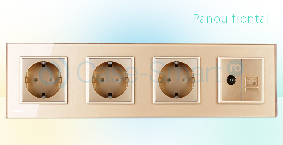 Priza cvadrupla Livolo cu rama din sticla 3 prize simple+TV/internet