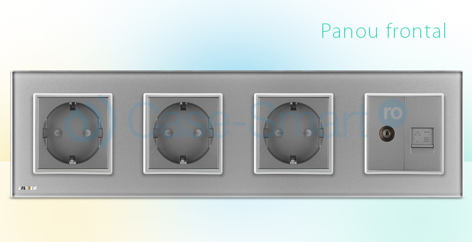 Priza cvadrupla Livolo cu rama din sticla 3 prize simple+TV/internet