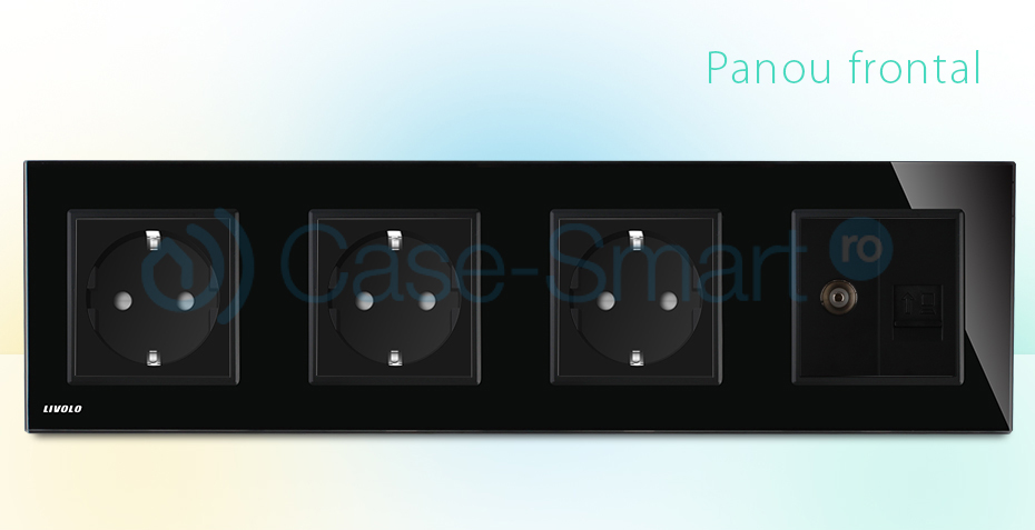 Priza cvadrupla Livolo cu rama din sticla 3 prize simple+TV/internet