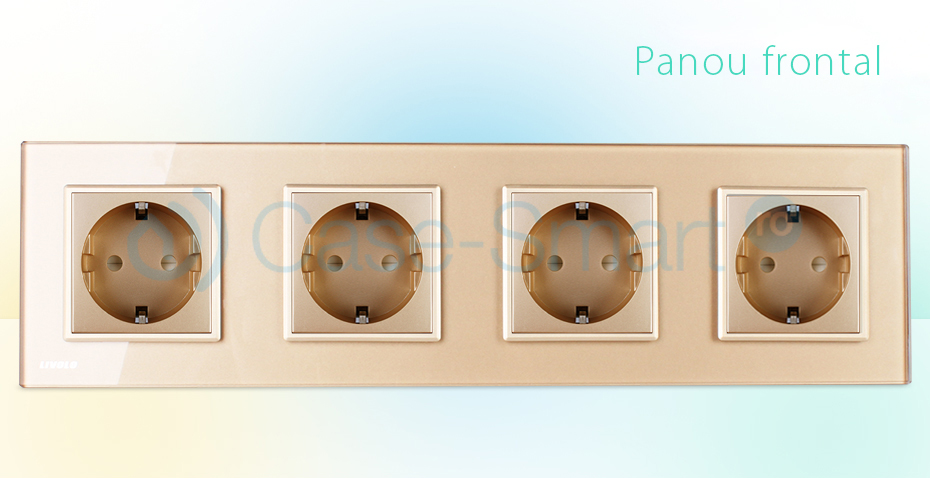 Priza cvadrupla Livolo cu rama din sticla crystal termorezistenta contine 4 prize electrice de perete, ofera eleganta casei tale cu produse de calitate.