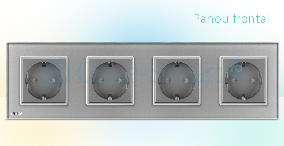 Priza cvadrupla Livolo cu rama din sticla crystal termorezistenta contine 4 prize electrice de perete, ofera eleganta casei tale cu produse de calitate.