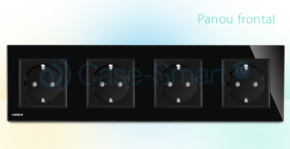 Priza cvadrupla Livolo cu rama din sticla crystal termorezistenta contine 4 prize electrice de perete, ofera eleganta casei tale cu produse de calitate.