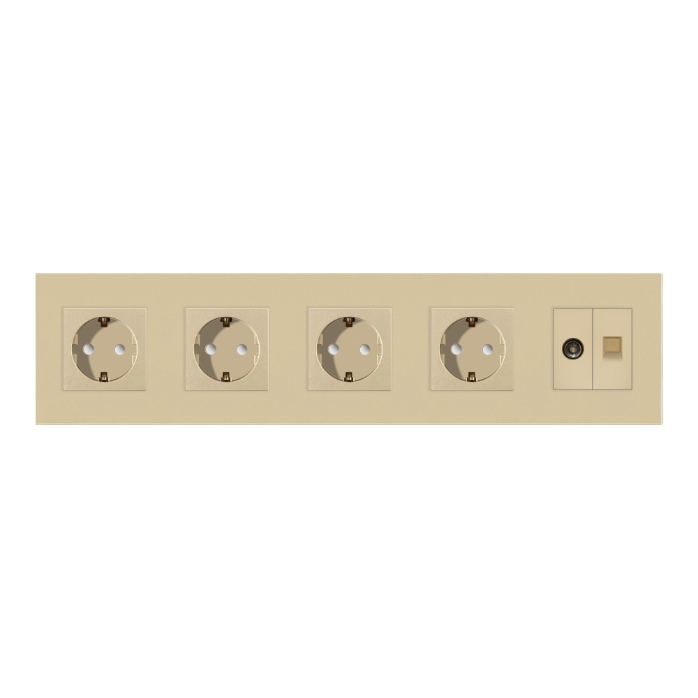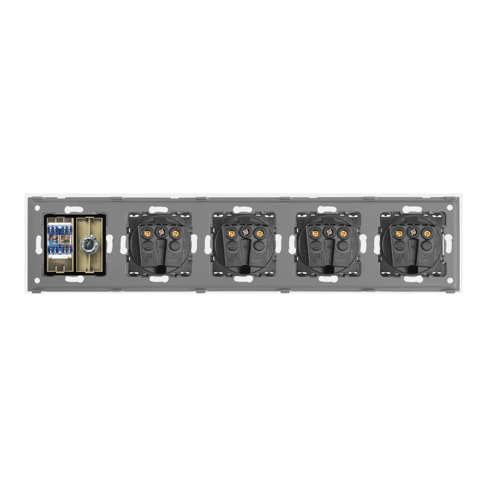 Priza Cvadrupla Schuko + TV + Internet cu Rama Din Sticla LUXION