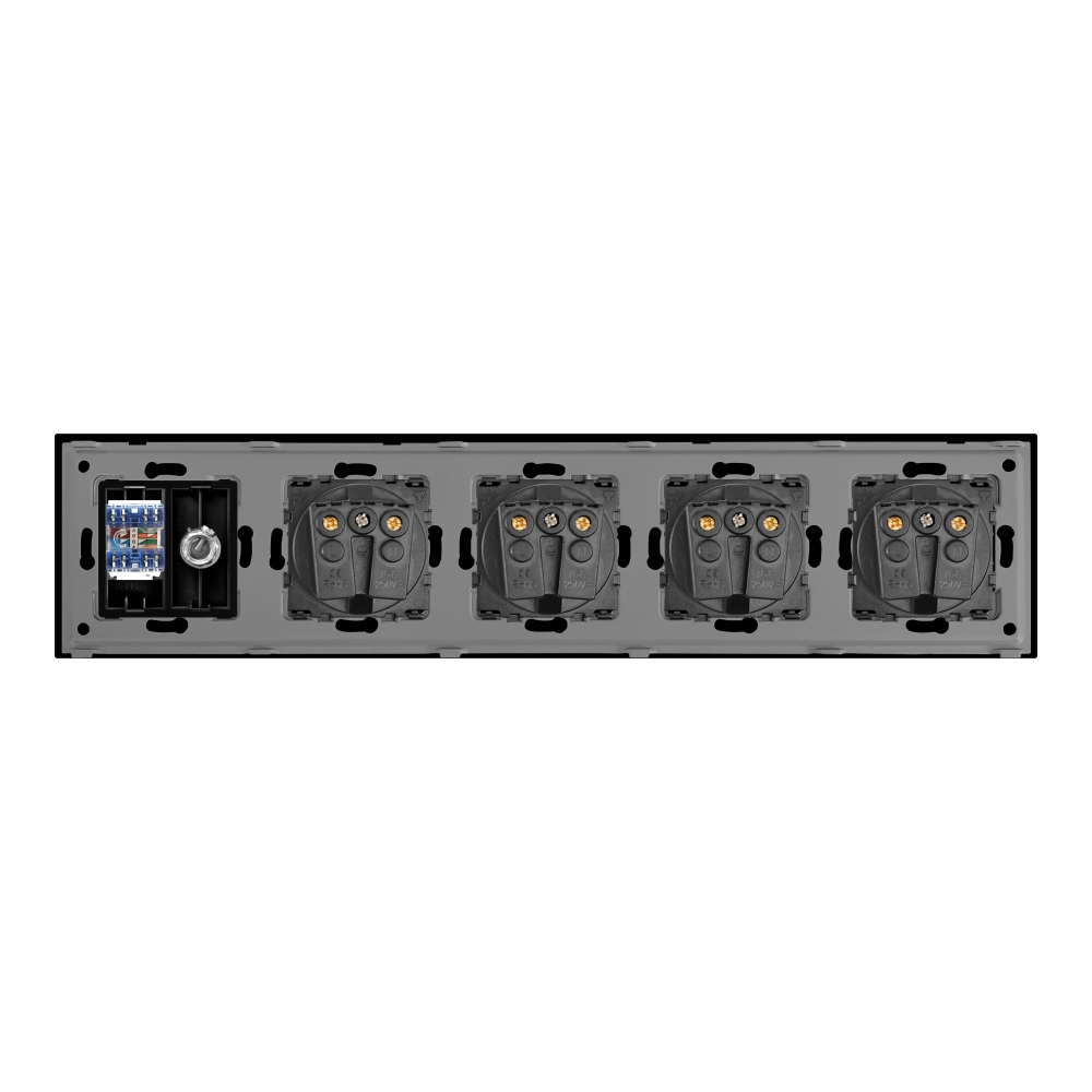 Priza Cvadrupla Schuko + TV + Internet cu Rama Din Sticla LUXION