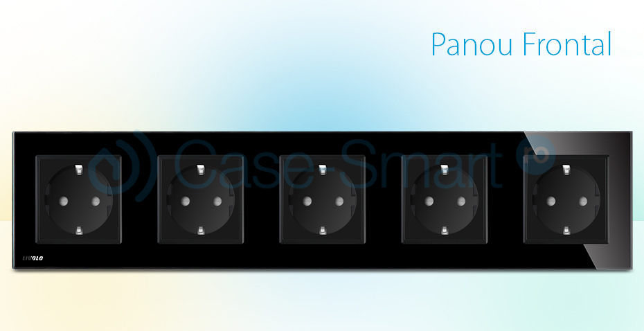 Priza cvintupla Livolo, din sticla crystal termorezistenta, foarte eleganta, potrivita atat pentru prize simple cat si pentru prize media diferite.