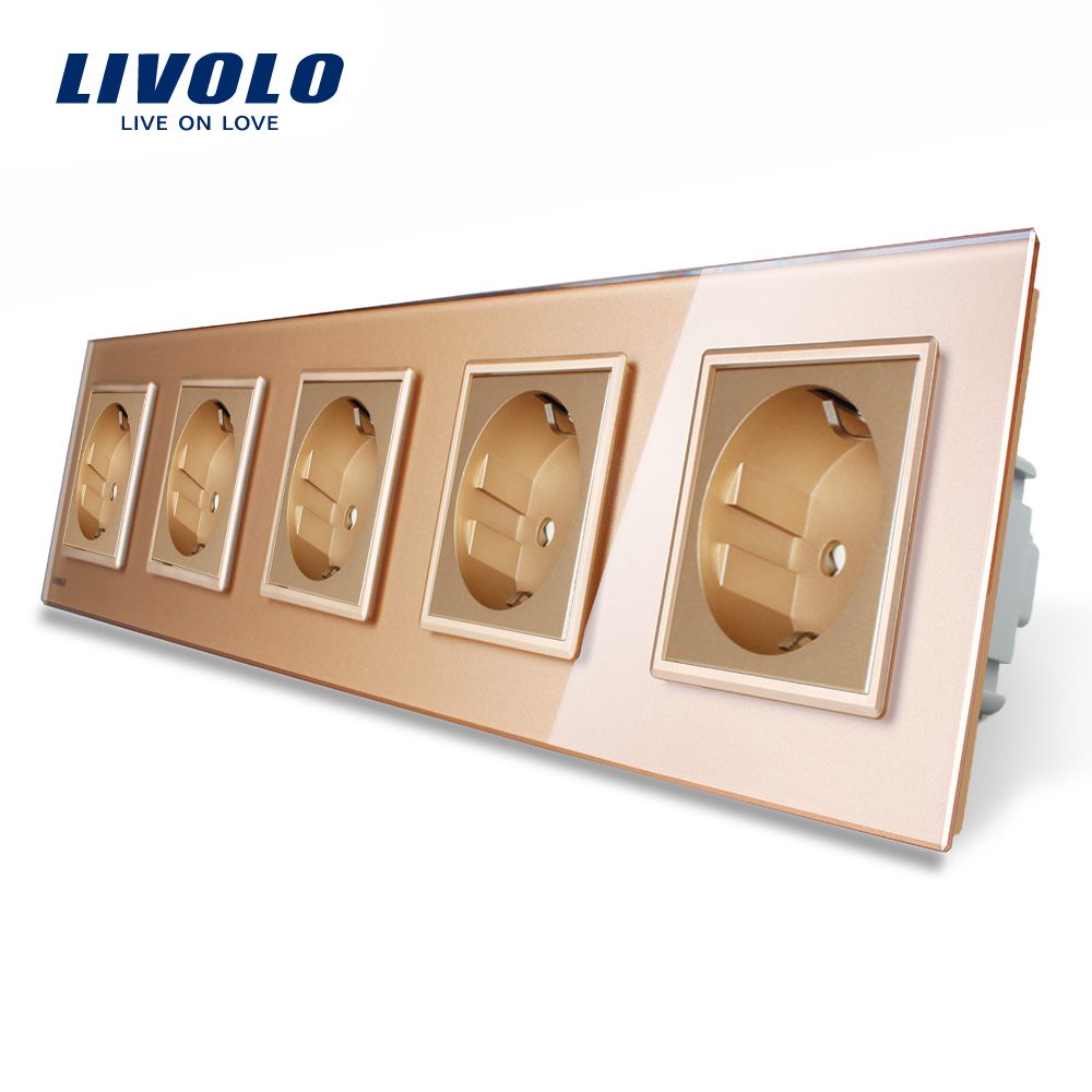 Priza cvintupla Livolo, din sticla crystal termorezistenta, foarte eleganta, potrivita atat pentru prize simple cat si pentru prize media diferite.