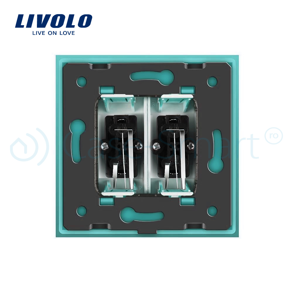 Priza dubla audio Livolo cu rama din sticla va ajuta sa conectati sistemul audio direct in perete si sa ascundeti cablurile electrice inestetice.