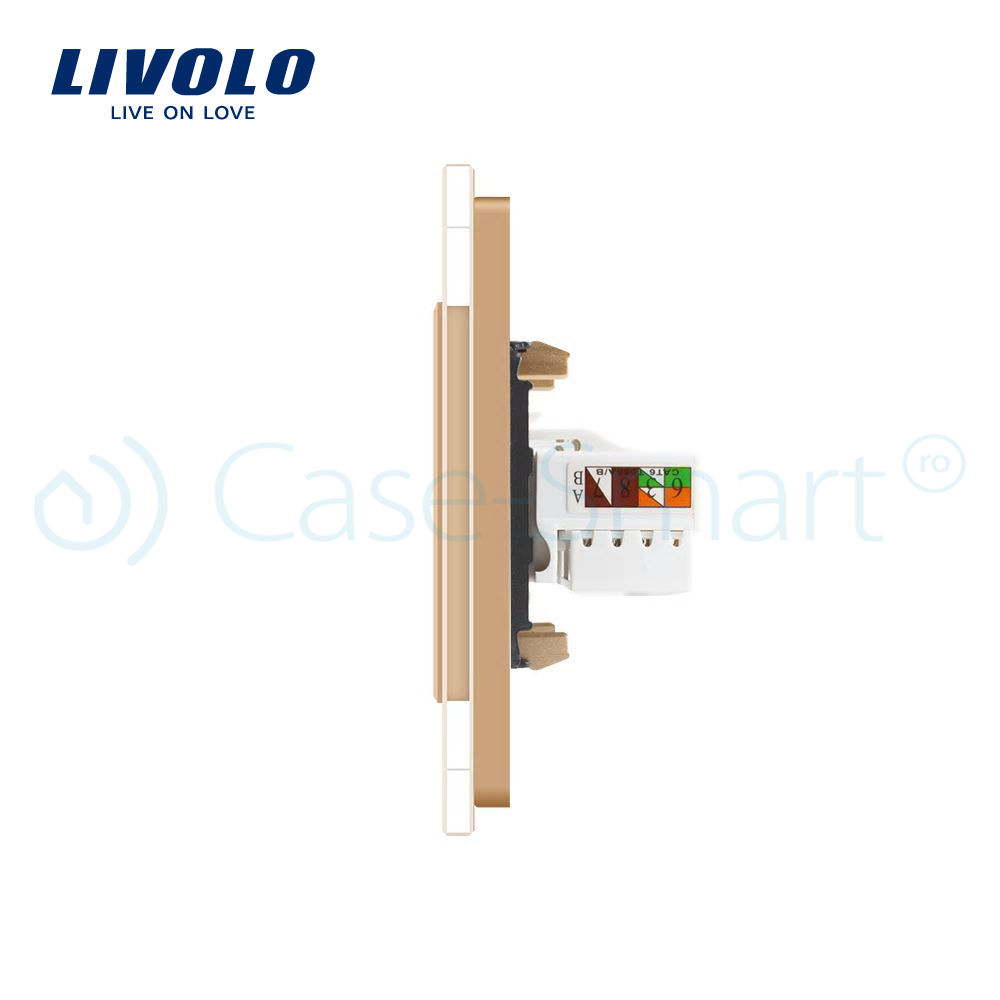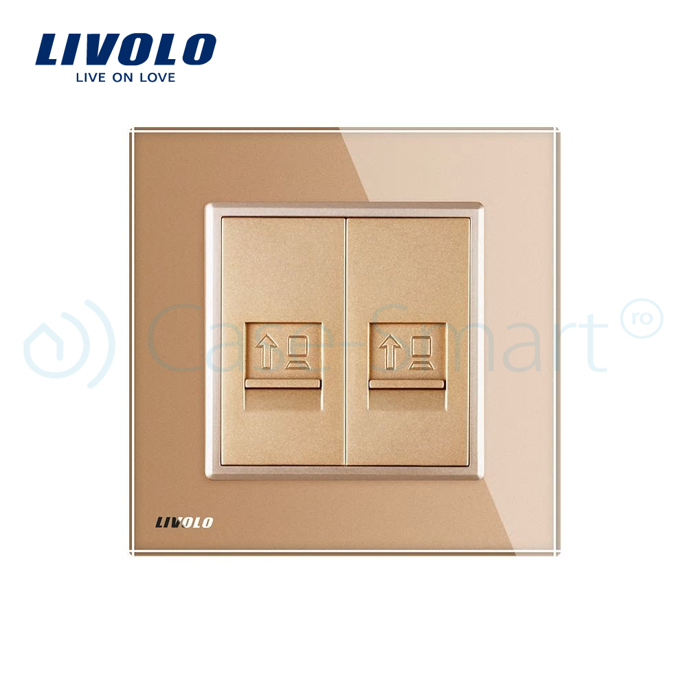 Priza dubla internet Livolo cu rama din sticla crystal, rezistent la zgarieturi, umezeala, praf ofera casei tale un plus de rafinament si confort.