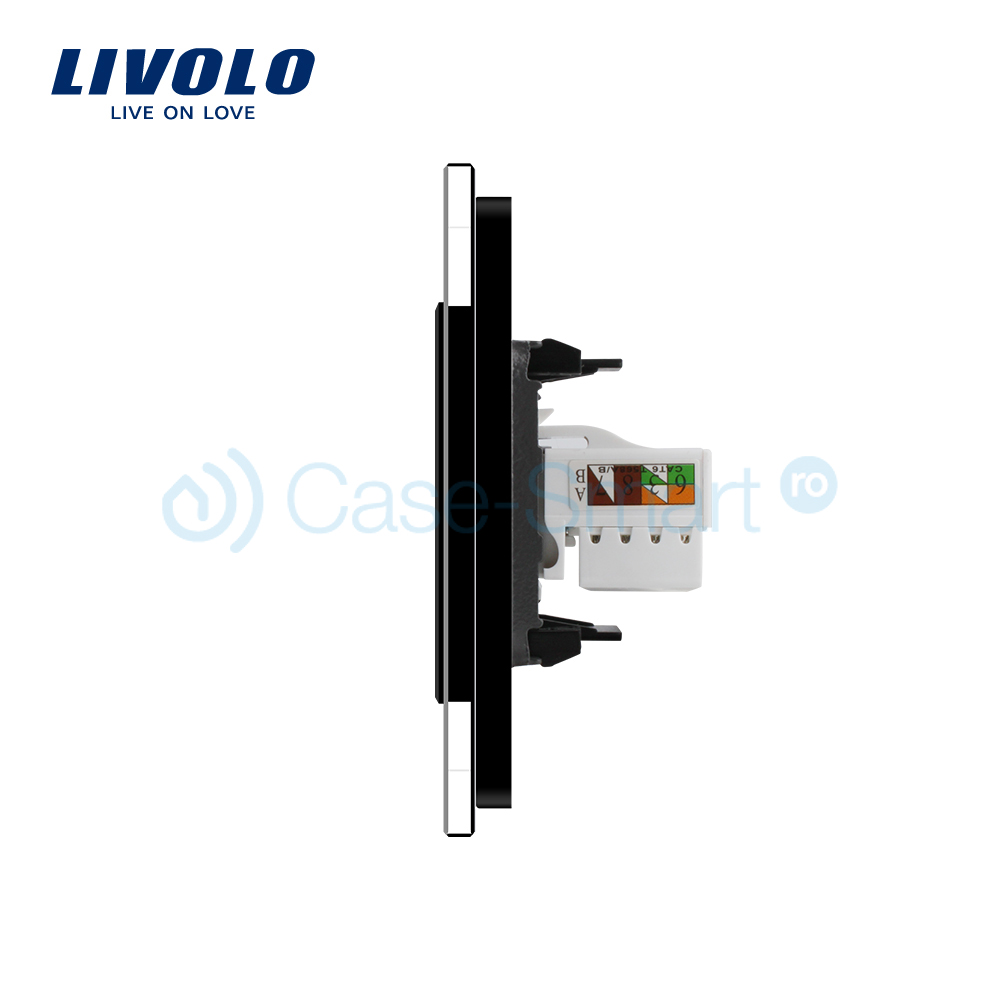Priza dubla internet Livolo cu rama din sticla