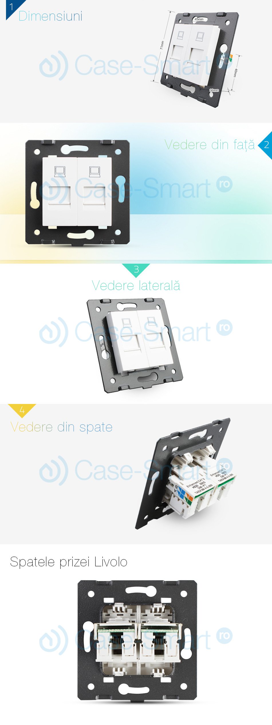 Priza dubla Livolo pentru internet se monteaza pe rama din sticla direct in doza din perete pentru a evita cablurile electrice inestetice – Produs premium.