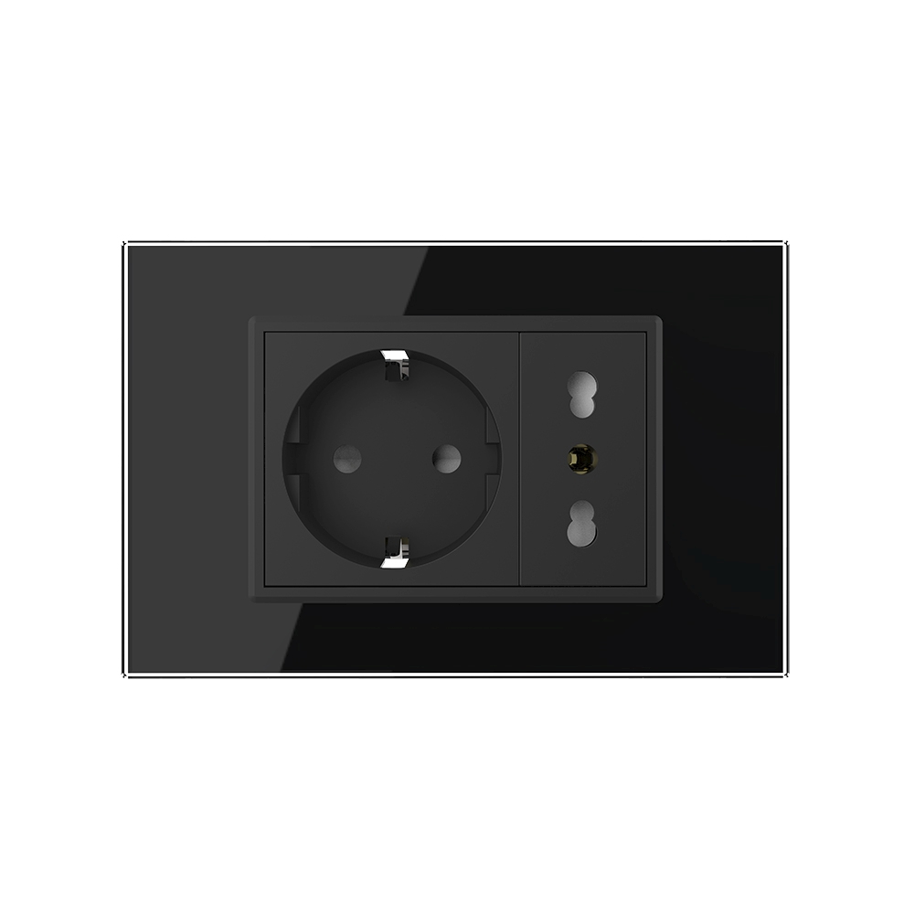 Priza dubla Livolo cu rama din sticla 4M, standard Italian, Serie noua