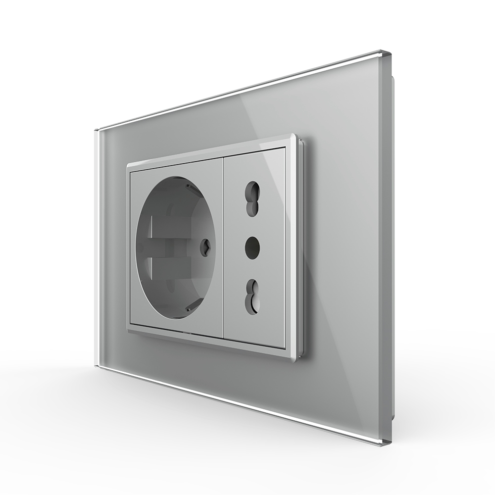Priza dubla italiana Livolo cu rama din sticla – standard italian