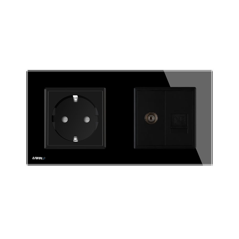 Priza dubla Livolo cu rama din sticla 1 priza Schuko+TV/internet