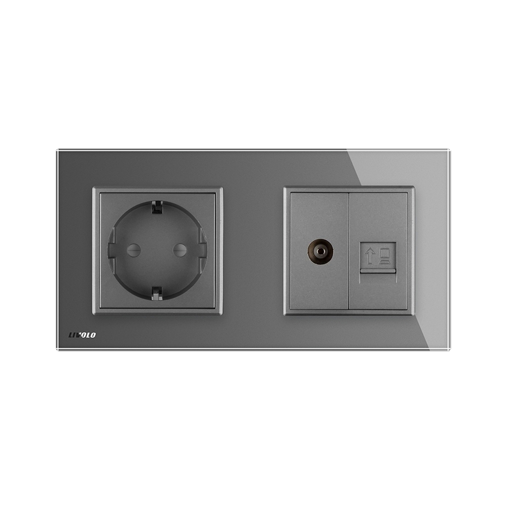 Priza dubla Livolo cu rama din sticla 1 priza Schuko+TV/internet