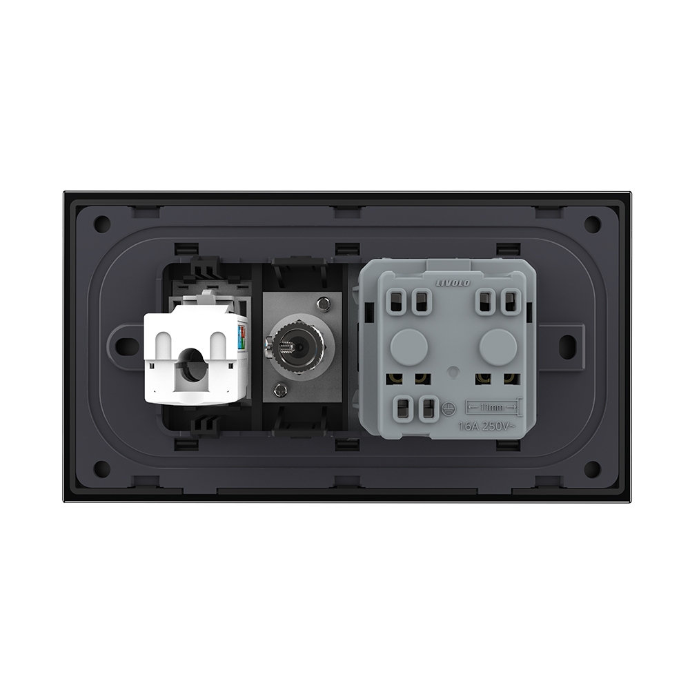 Priza Dubla Livolo cu Rama din Sticla 1 Priza Schuko+TV/internet, Standard Italian – Serie Noua