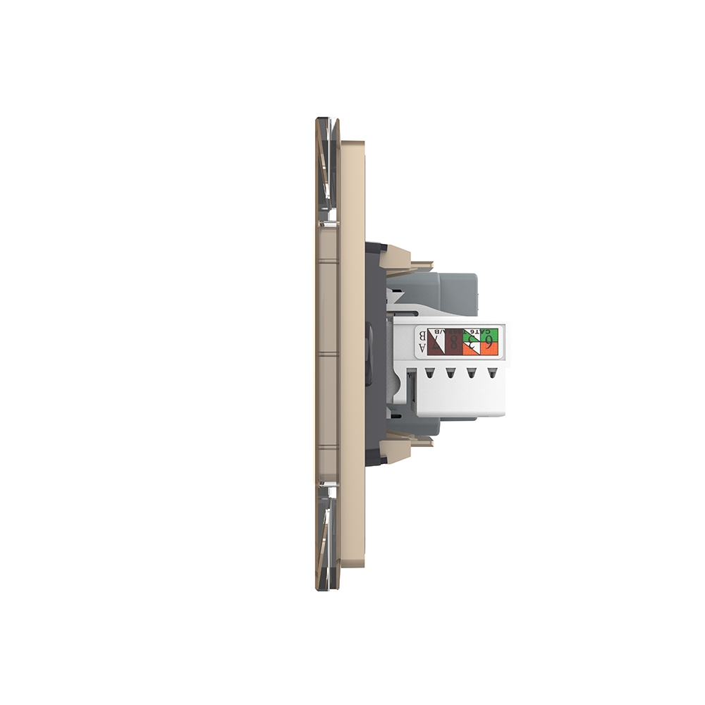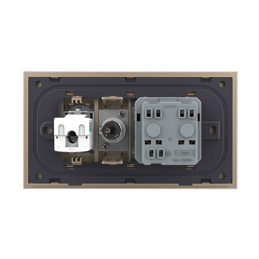 Priza Dubla Livolo cu Rama din Sticla 1 Priza Schuko+TV/internet, Standard Italian – Serie Noua