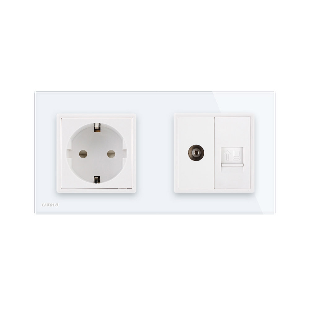 Priza dubla Livolo cu rama din sticla 1 priza Schuko+TV/internet