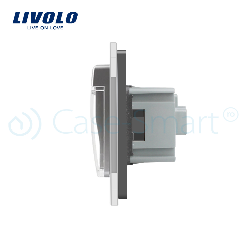 Priza dubla Livolo cu rama din sticla si capac de protectie rezistent la apa, rezistenta la zgarieturi, umezeala, praf ofera casei tale un plus de rafinament si confort.