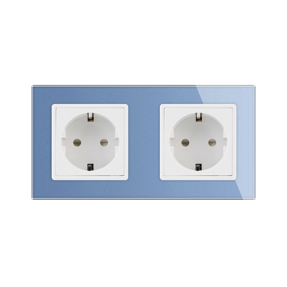 Priza dubla Livolo cu rama din sticla crystal termorezistenta contine 2 prize electrice de perete, ofera eleganta casei tale cu produse inovatoare.