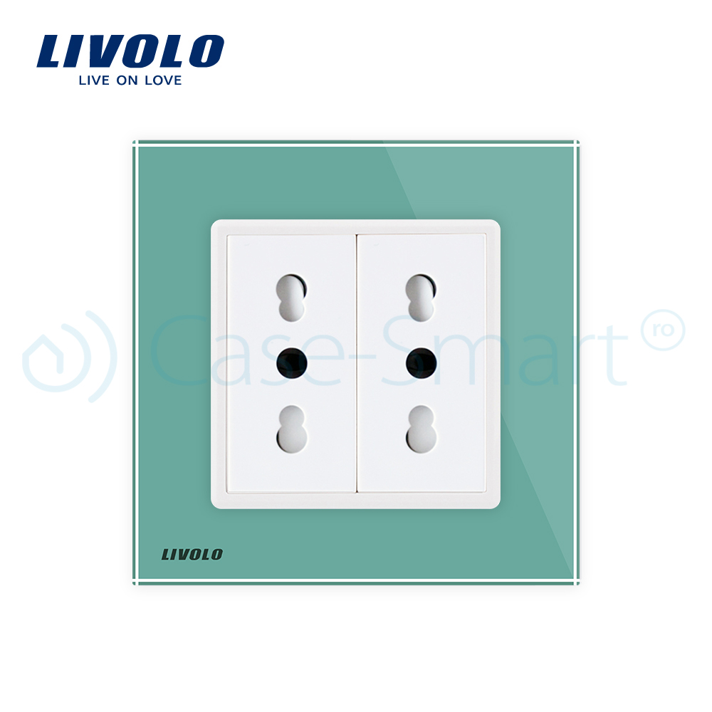Priza dubla module inguste Livolo cu rama din sticla – standard german
