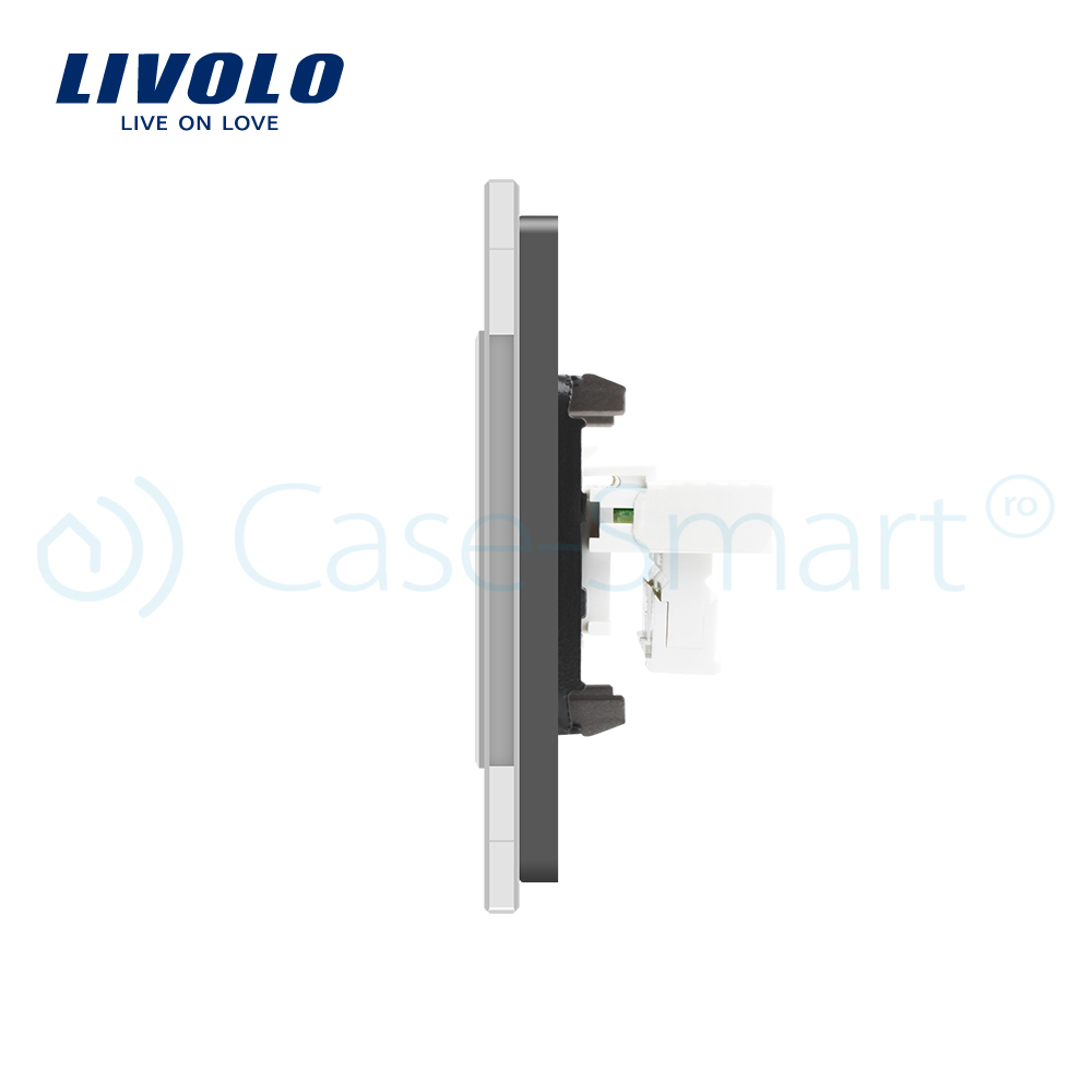 Priza dubla Telefon Livolo cu rama din sticla crystal, rezistent la zgarieturi, umezeala, praf ofera casei tale un plus de rafinament si confort.