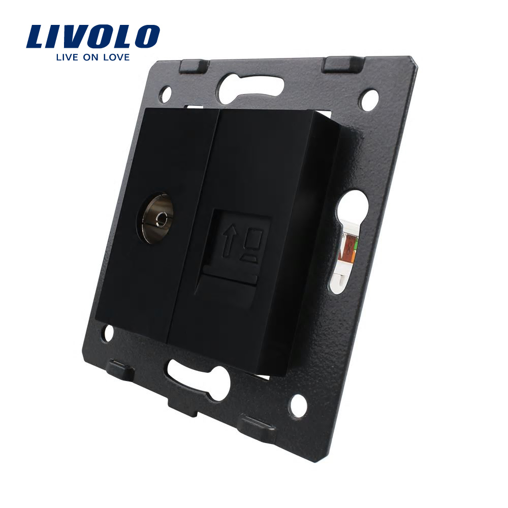 Priza dubla LIVOLO pentru televizor si internet se monteaza pe rama din sticla direct in doza din perete pentru a evita cablurile electrice inestetice.