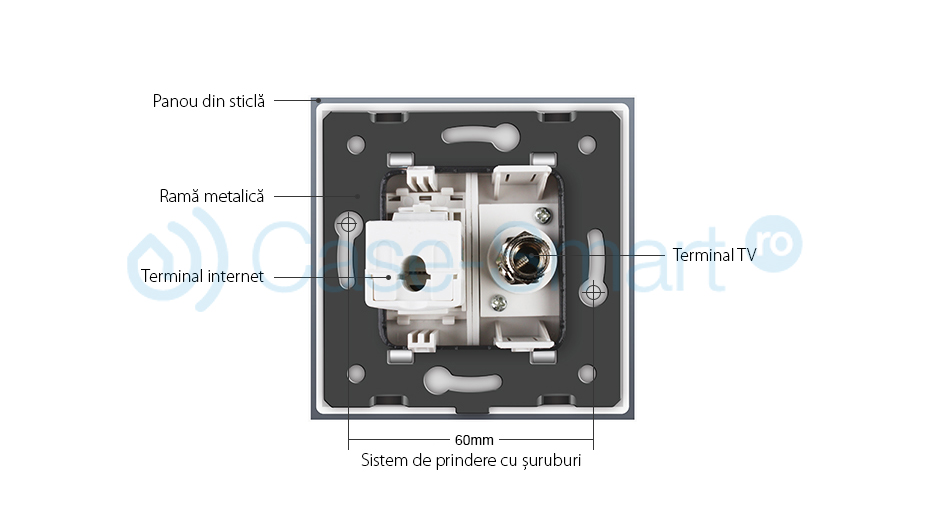 Priza dubla TV + priza internet Livolo cu rama din sticla