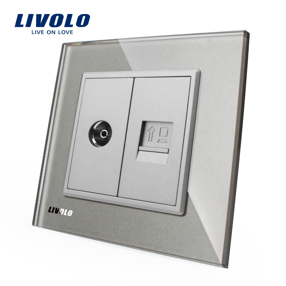 Priza dubla TV + priza internet Livolo cu rama din sticla crystal, rezistenta la zgarieturi, umezeala, praf ofera casei tale un plus de rafinament si confort.