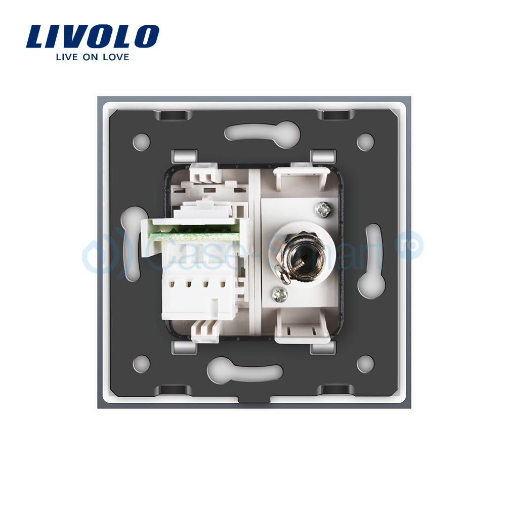 Priza dubla TV + Telefon Livolo cu rama din sticla crystal, rezistenta la zgarieturi, umezeala, praf ofera casei tale un plus de rafinament si confort.