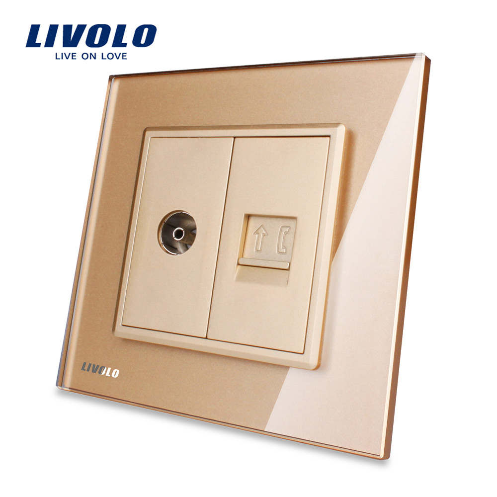 Priza dubla TV + Telefon Livolo cu rama din sticla crystal, rezistenta la zgarieturi, umezeala, praf ofera casei tale un plus de rafinament si confort.