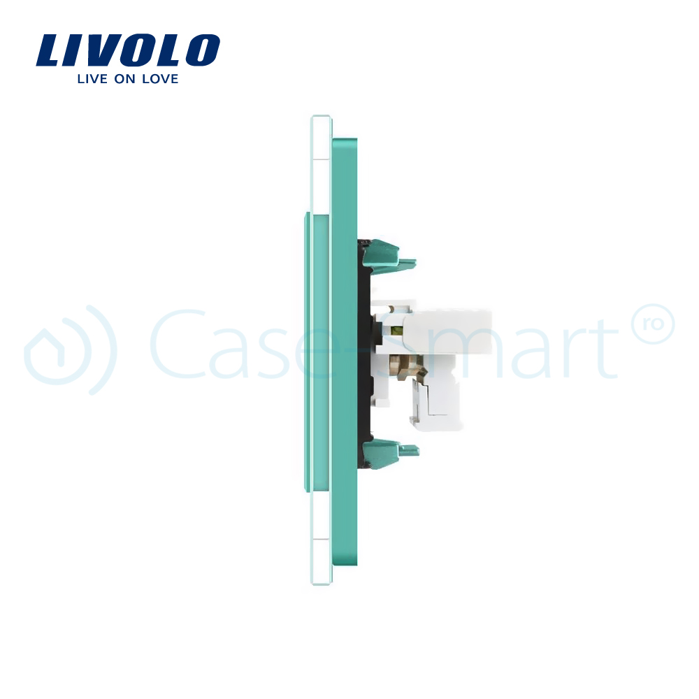 Priza dubla TV + Telefon Livolo cu rama din sticla crystal, rezistenta la zgarieturi, umezeala, praf ofera casei tale un plus de rafinament si confort.