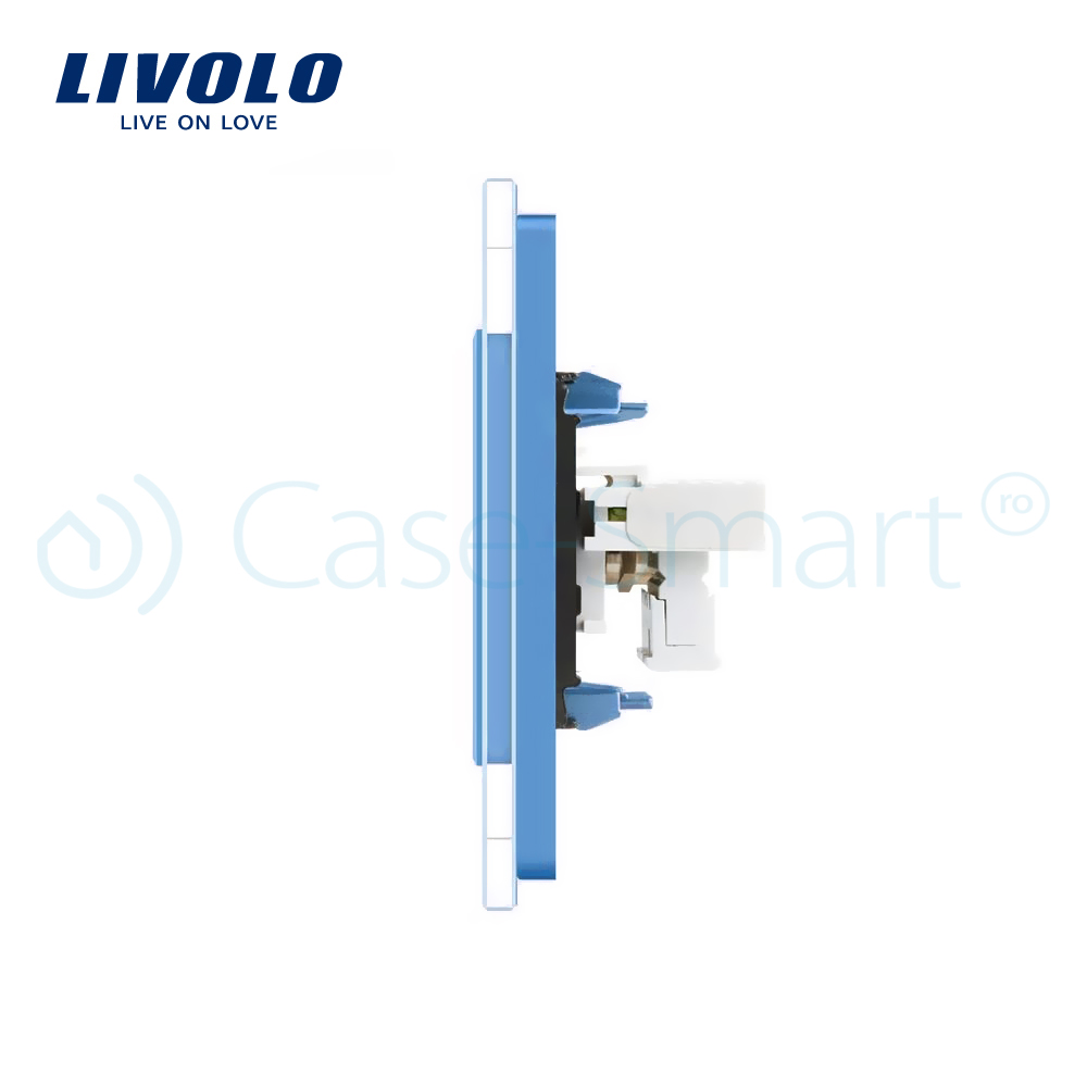 Priza dubla Telefon + Priza internet Livolo cu rama din sticla