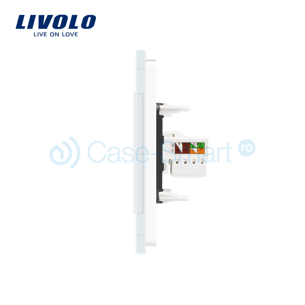 Priza Livolo cu rama din sticla pentru internet, o puteti combina cu alta priza media tip TV, Telefon, USB, audio si astfel ascundeti cablurile inestetice.