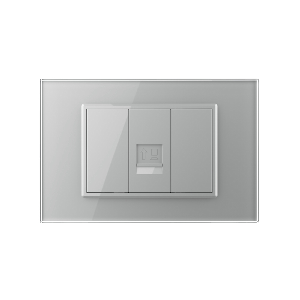 Priza Livolo pentru internet, cu rama din sticla, pentru dormitor, birou, camera copilului. Produse moderne de inalta calitate. Produsul este compatibil cu doze modulare in 3 module cu distanta dintre suruburi de 85 mm.