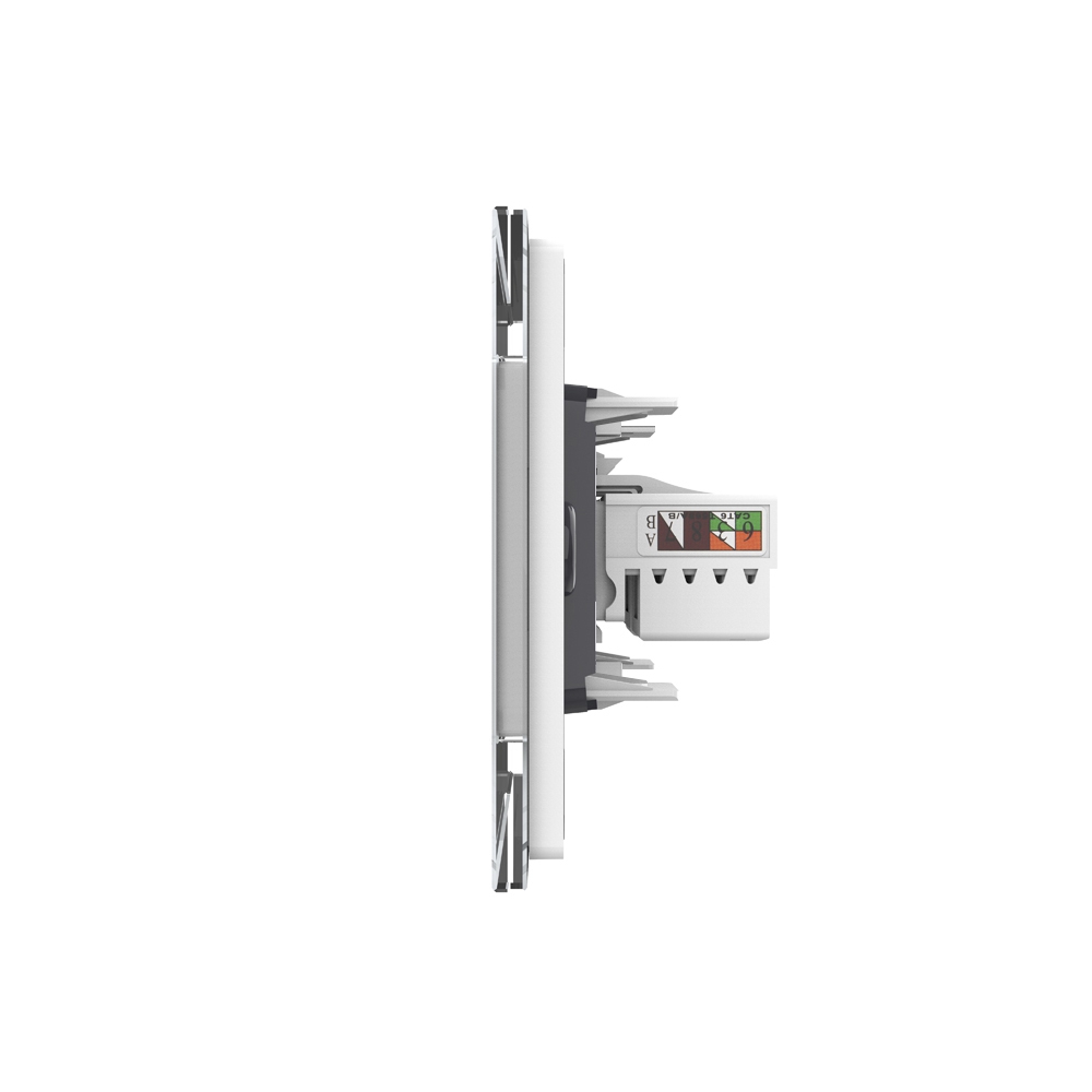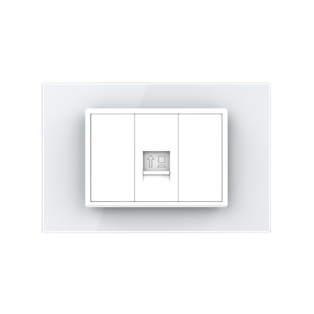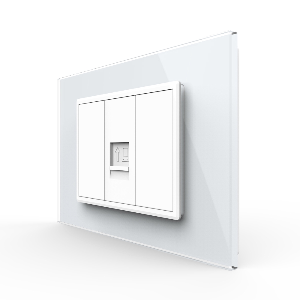 Priza Livolo pentru internet, cu rama din sticla, pentru dormitor, birou, camera copilului. Produse moderne de inalta calitate. Produsul este compatibil cu doze modulare in 3 module cu distanta dintre suruburi de 85 mm.