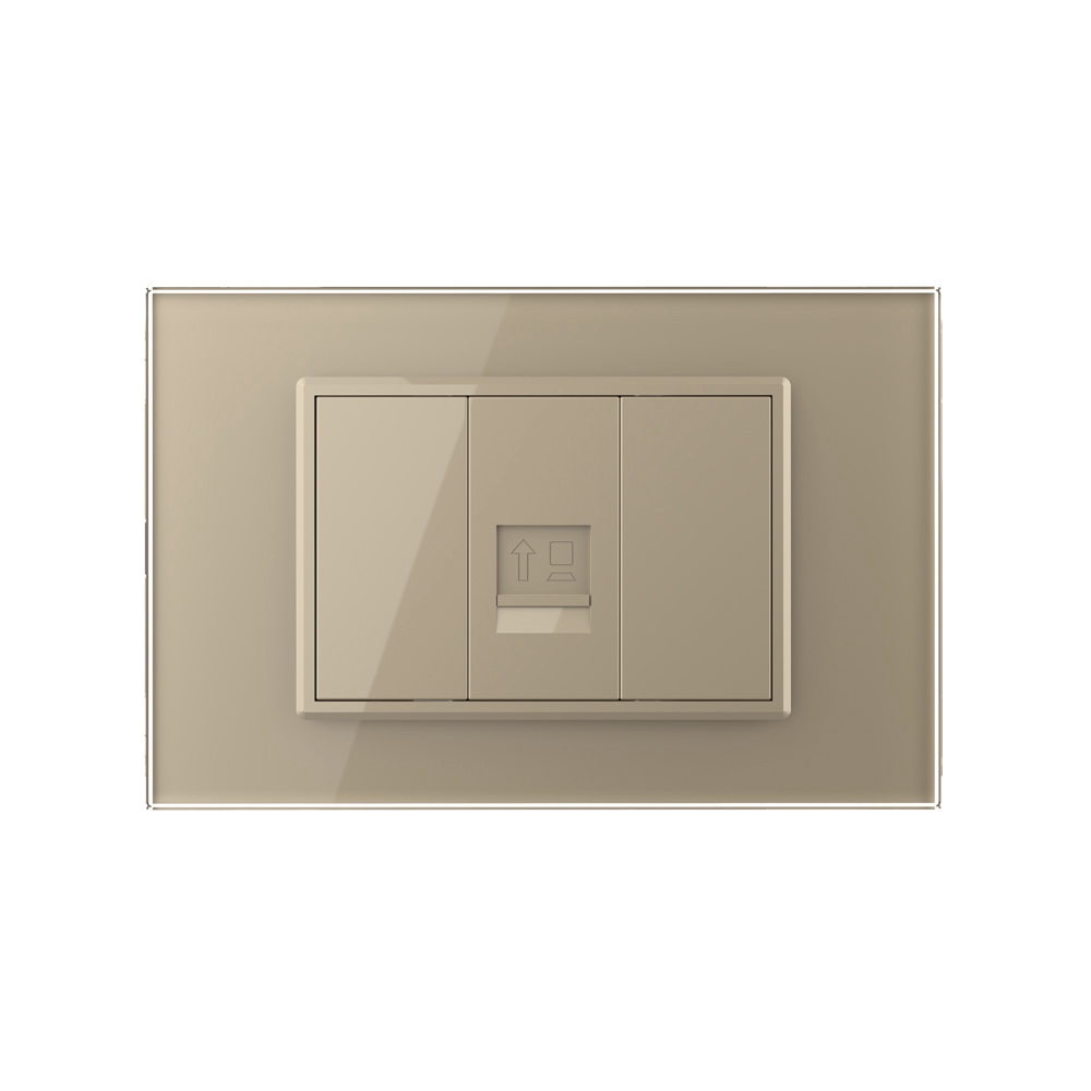Priza Livolo pentru internet, cu rama din sticla, pentru dormitor, birou, camera copilului. Produse moderne de inalta calitate. Produsul este compatibil cu doze modulare in 3 module cu distanta dintre suruburi de 85 mm.