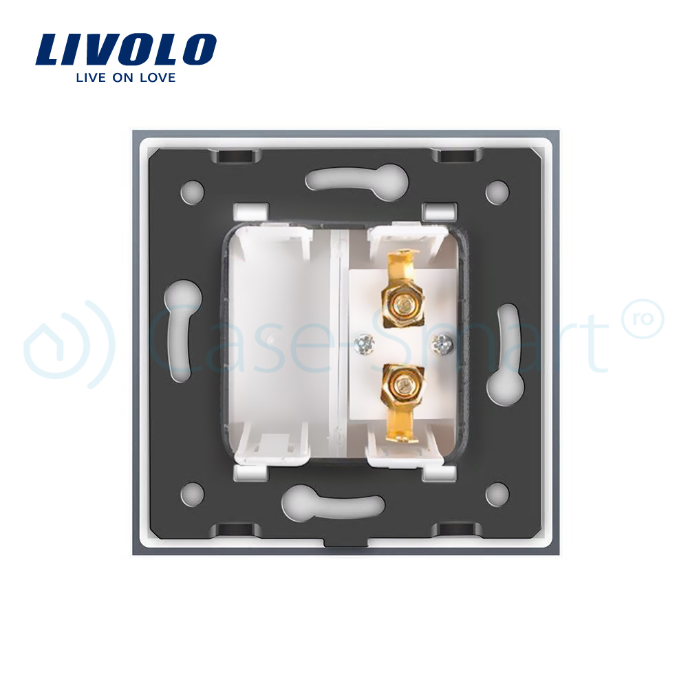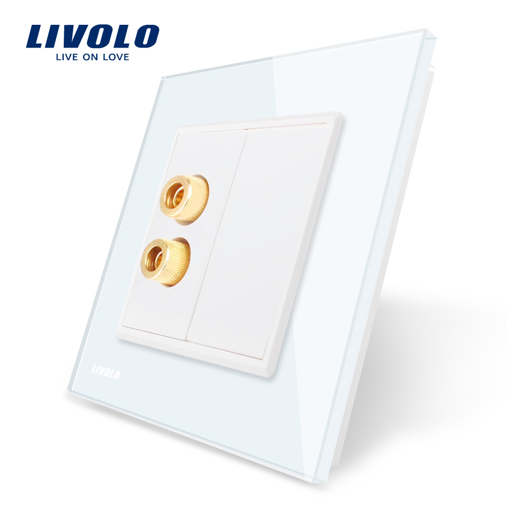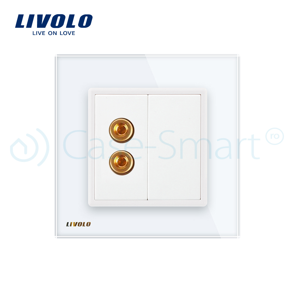 Priza redare sunet Livolo cu rama din sticla va ajuta sa conectati sistemul audio direct in perete si sa ascundeti cablurile electrice inestetice.