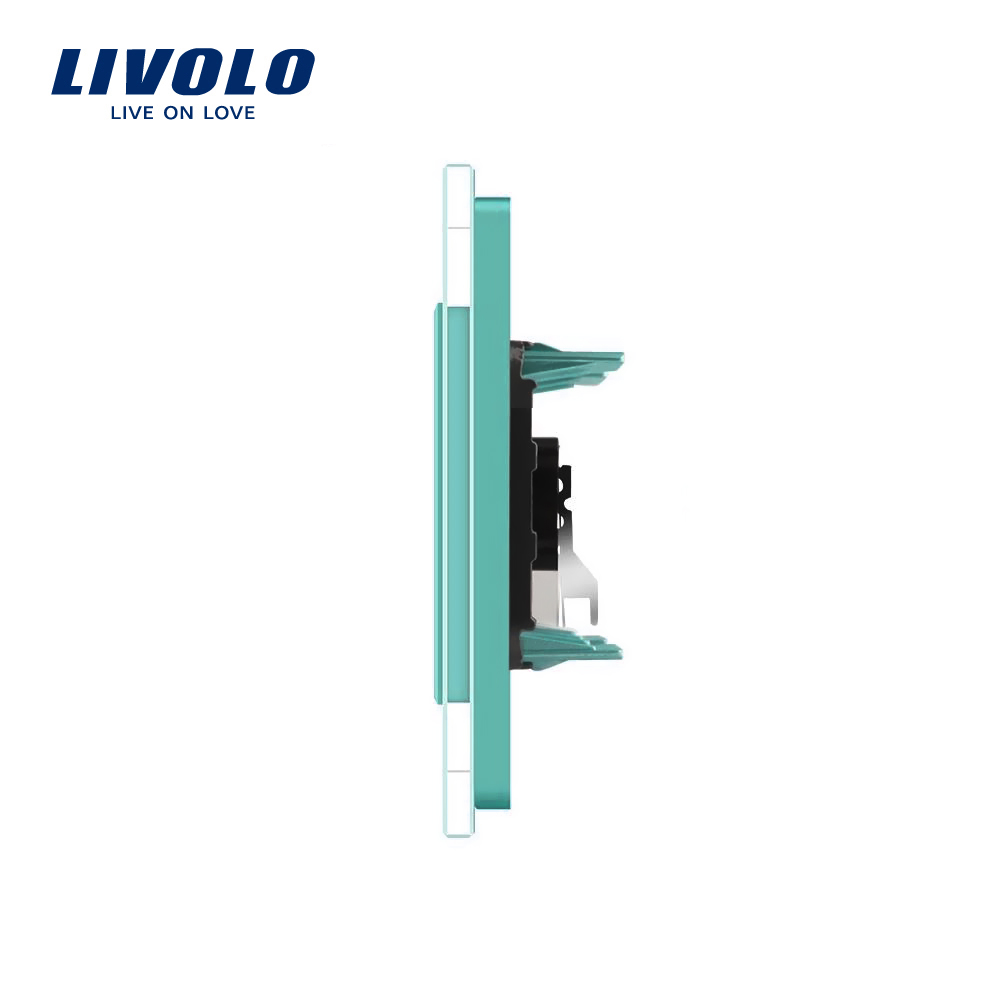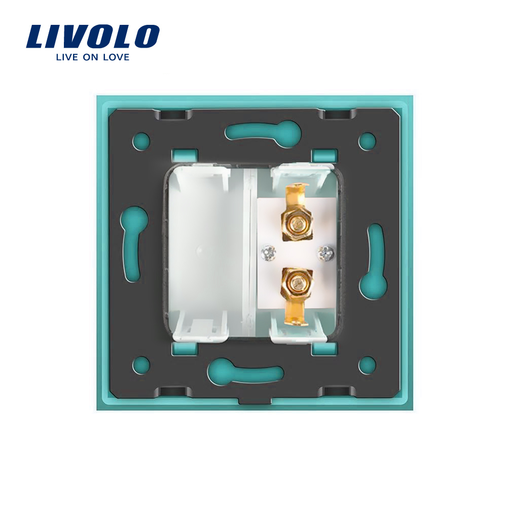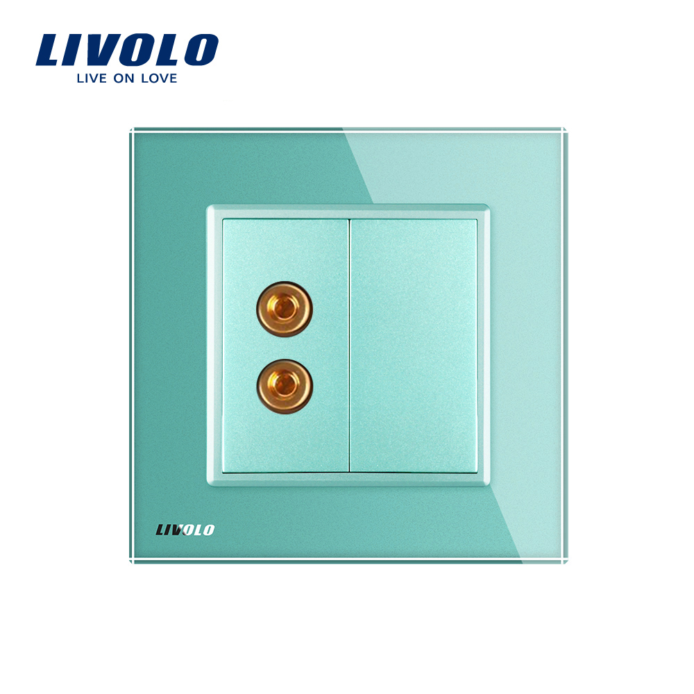 Priza redare sunet Livolo cu rama din sticla va ajuta sa conectati sistemul audio direct in perete si sa ascundeti cablurile electrice inestetice.
