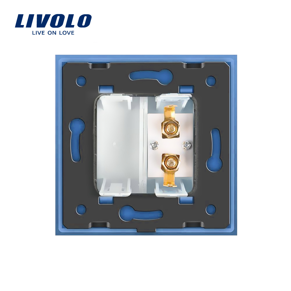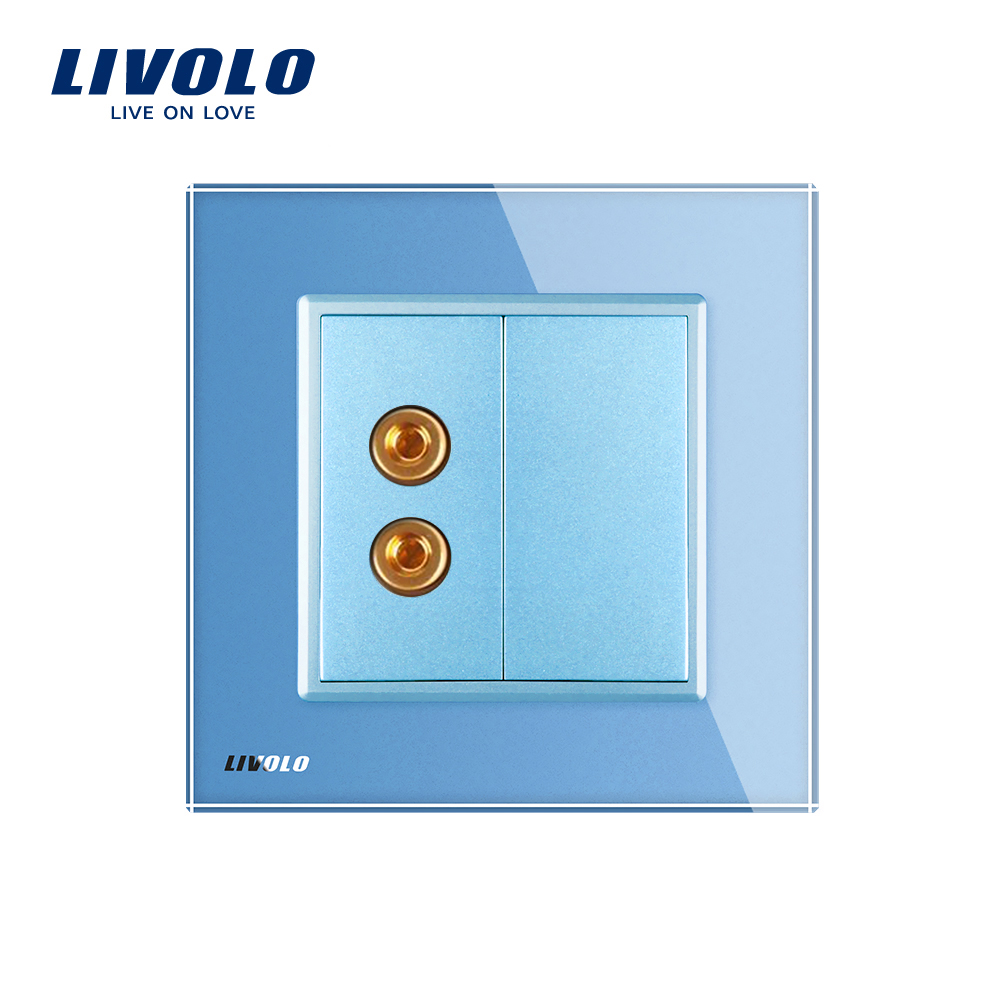 Priza redare sunet Livolo cu rama din sticla va ajuta sa conectati sistemul audio direct in perete si sa ascundeti cablurile electrice inestetice.