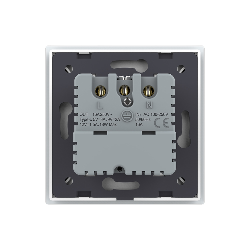 Priza schuko + USB C, standard german LIVOLO cu rama din sticla. Produsul este ideal pentru case, birouri, spatii comerciale, hoteluri. Se monteaza in doza cu distanta intre suruburi de 60 mm.