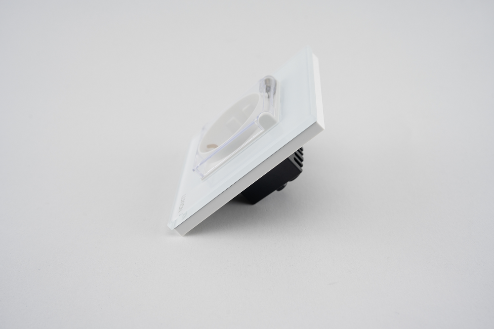 Priza Simpla cu Capac de Protectie cu Rama din Sticla LUXION