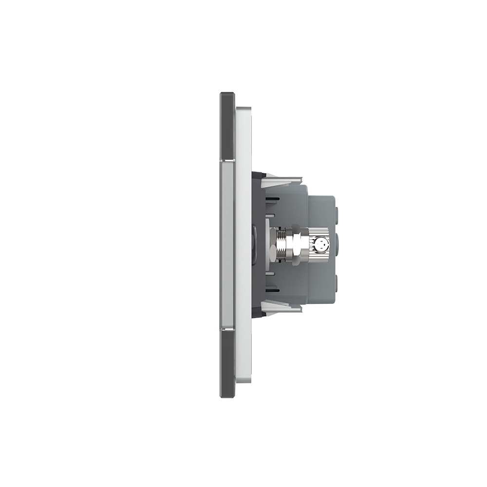 Priza simpla cu TV Livolo cu rama din sticla, model italian pentru case, birouri, spatii comerciale, hoteluri. Produse moderne de inalta calitate. Produsul este compatibil cu doze modulare in 3 module cu distanta dintre suruburi de 85 mm.