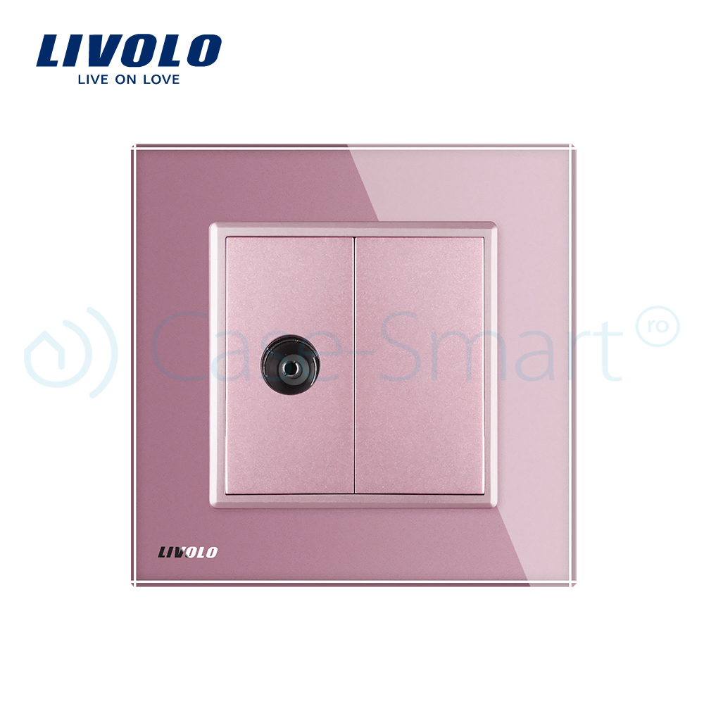 Priza media simpla Livolo cu rama din sticla, pentru Televizor, se monteaza direct in perete, si astfel puteti ascunde cablurile electrice inestetice.