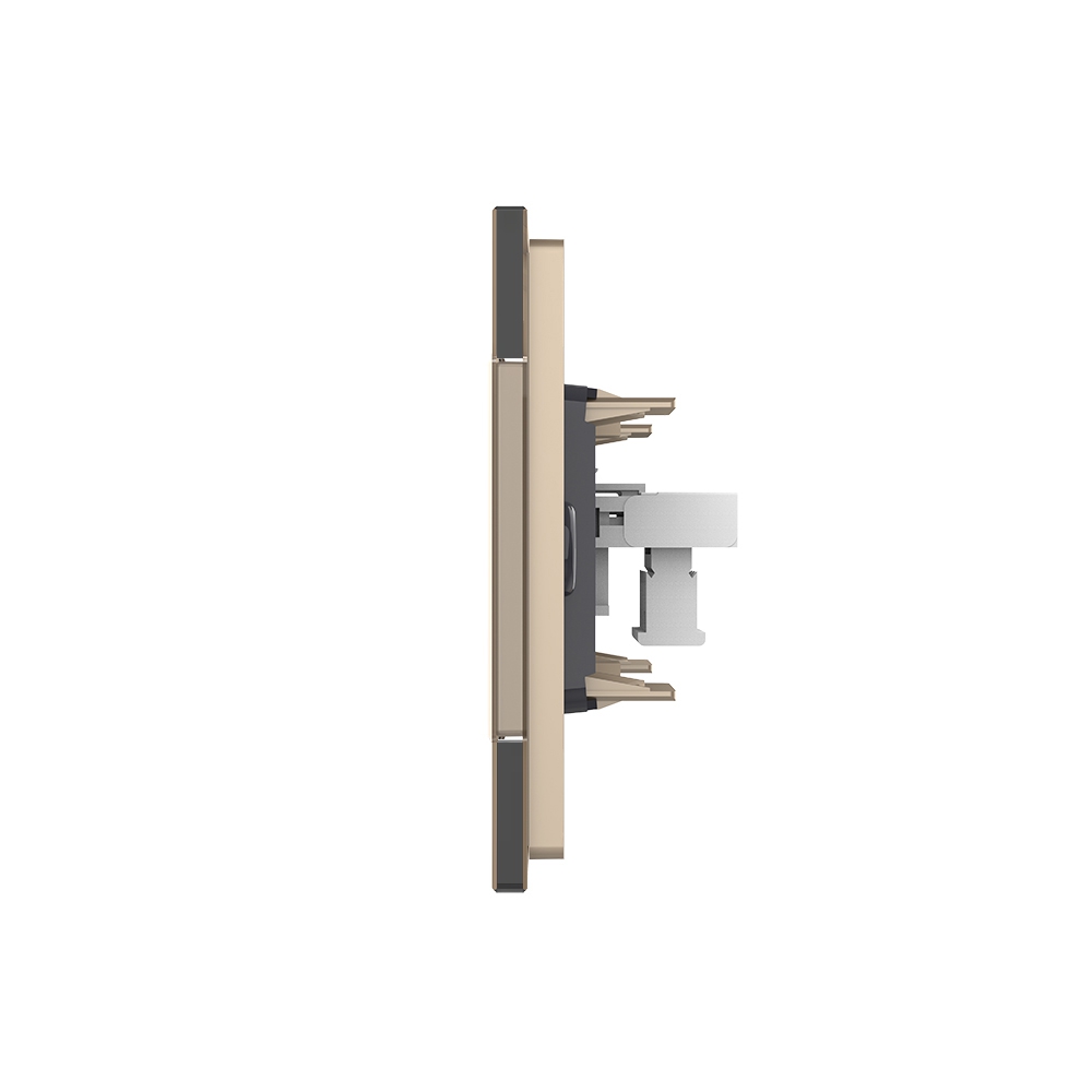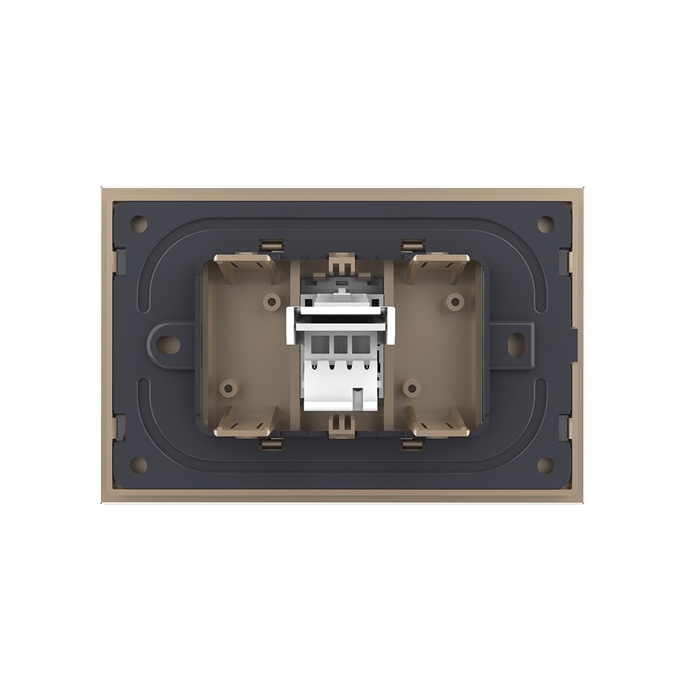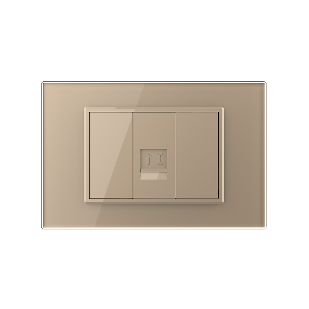 Priza Livolo pentru telefon, cu rama din sticla, pentru dormitor, birou, camera copilului. Produse moderne de inalta calitate. Produsul este compatibil cu doze modulare in 3 module cu distanta dintre suruburi de 85 mm.