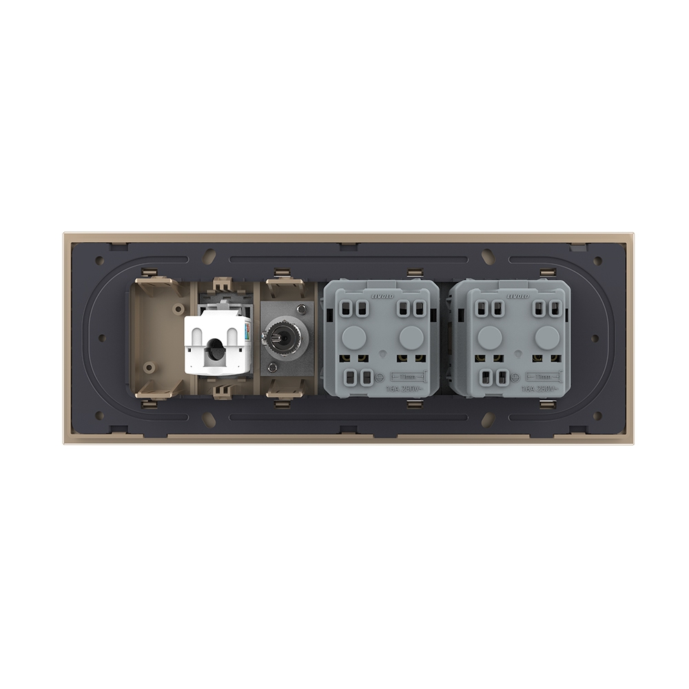 Priza Tripla cu Blank Livolo cu Rama din Sticla 2 Prize Schuko+TV/internet, Standard Italian - Serie Noua